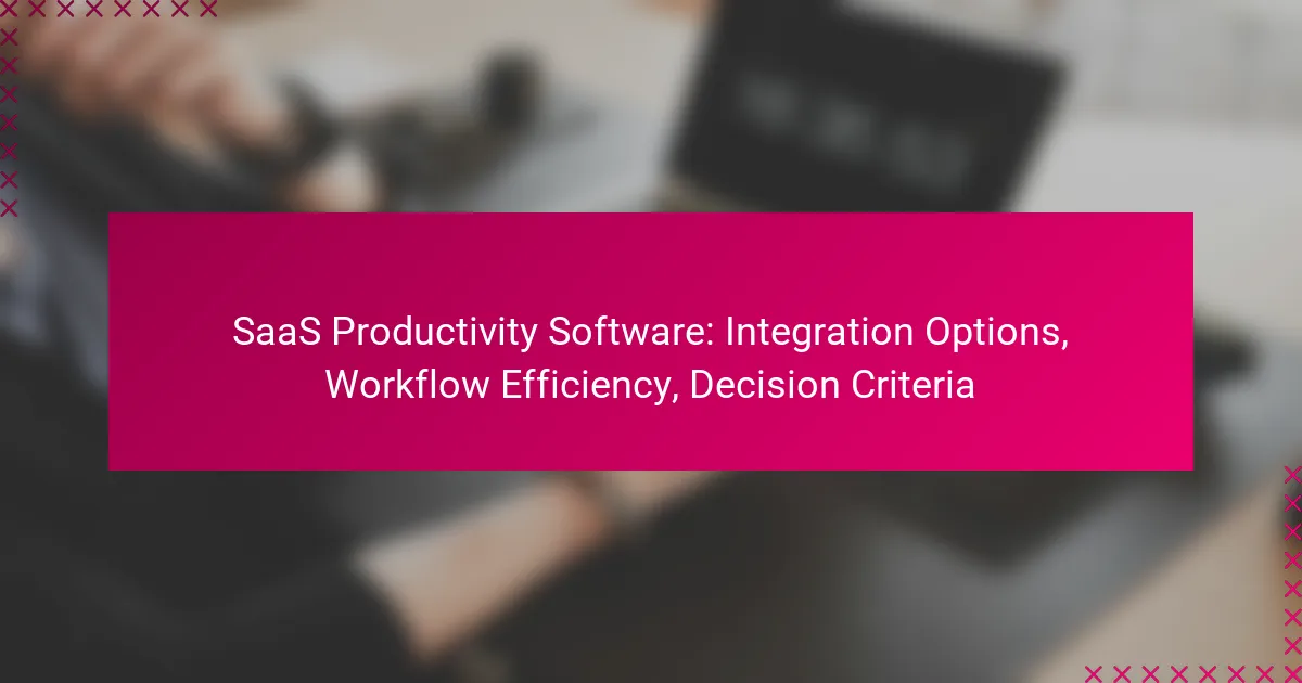 Key decision criteria for selecting SaaS productivity software include integration capabilities, user interface and experience, pricing models, and customer support. Evaluating these factors helps ensure the software meets organizational needs and enhances workflow efficiency.